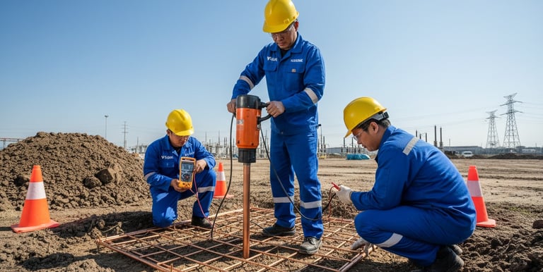 Instalación y verificación de sistemas de puesta a tierra para protección eléctrica de instalaciones y personal.